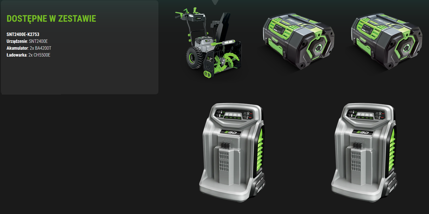 EGO POWER PLUS SNT2400E ODŚNIEŻARKA DWUSTOPNIOWA Z NAPĘDEM - ZESTAW 2X BATERIA 7,5AH I 2X SZYBKA ŁADOWARKA