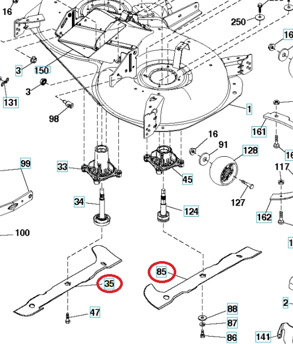 Noże tnące - komplet 2 sztuki do kosiarek samojezdnych - traktów Husqvarna, McCulloch, Partner, Poulan, Rally, Jonsered